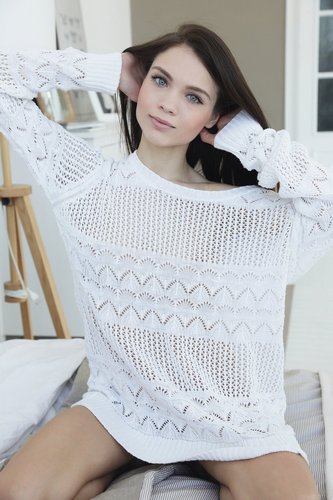 Описание: Нескромная девушка с темными волосами, надев вязаную белую кофточку расположилась на любимой кровате. В скором времени молодая милашка начала ласкать свою горячую киску пальчиками, от чего очень сильно возбудилась. Не став стесняться, распутная девица оголилась перед камерой и продолжила играть с киской, только при этом еще начала демонстрировать свое стройное тело в разных позах.